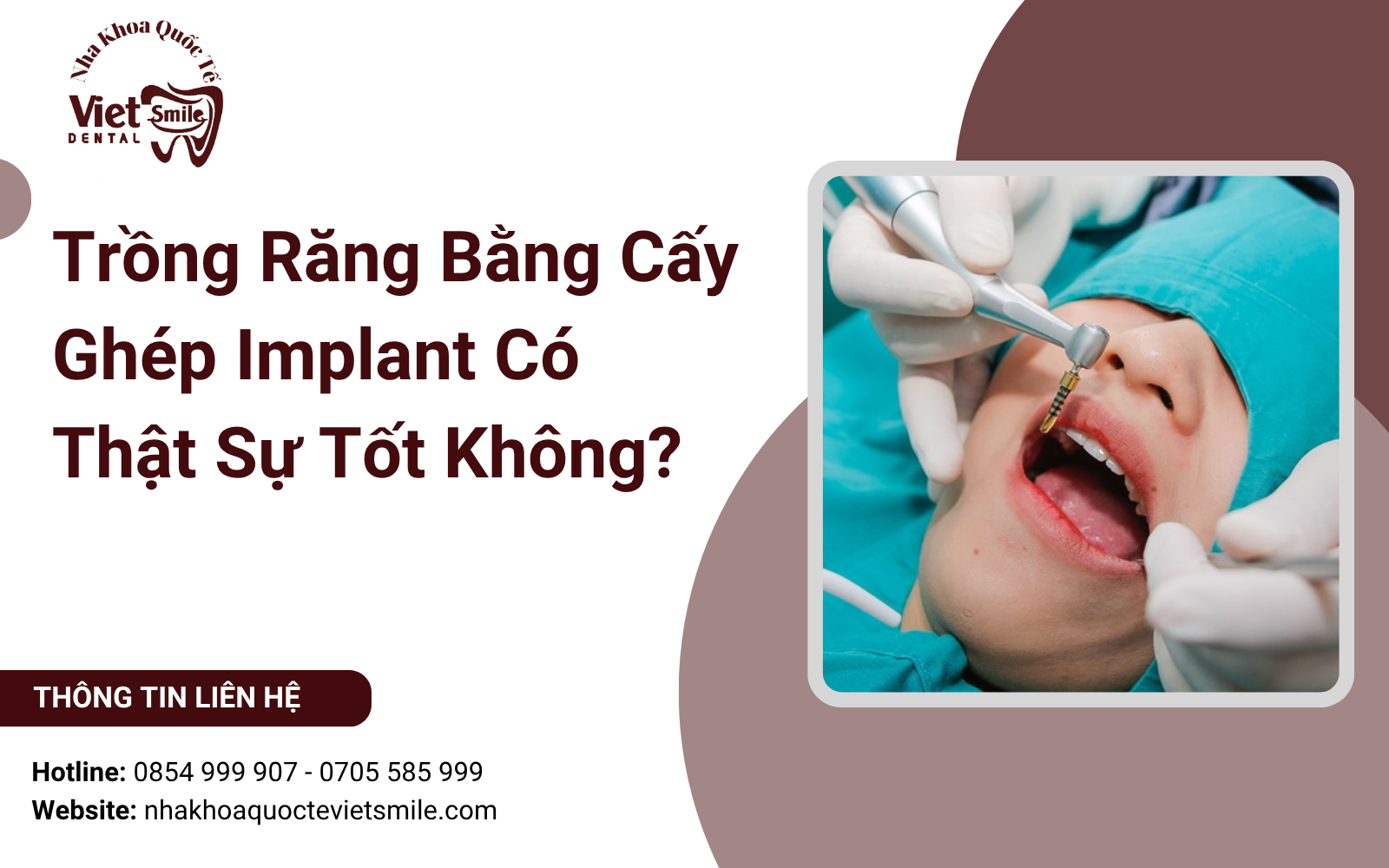 Trồng răng bằng cấy ghép Implant có thật sự tốt không? Đây là câu hỏi được rất nhiều người quan tâm khi lựa chọn phương pháp phục hình răng. Theo các chuyên gia, đây là phương pháp an toàn, hiệu quả nhất và có độ bền lâu dài nhất. Để biết thêm thông tin chi tiết về phương pháp này, hãy cùng Nha khoa Quốc tế Việt Smile đọc qua bài viết này nhé!