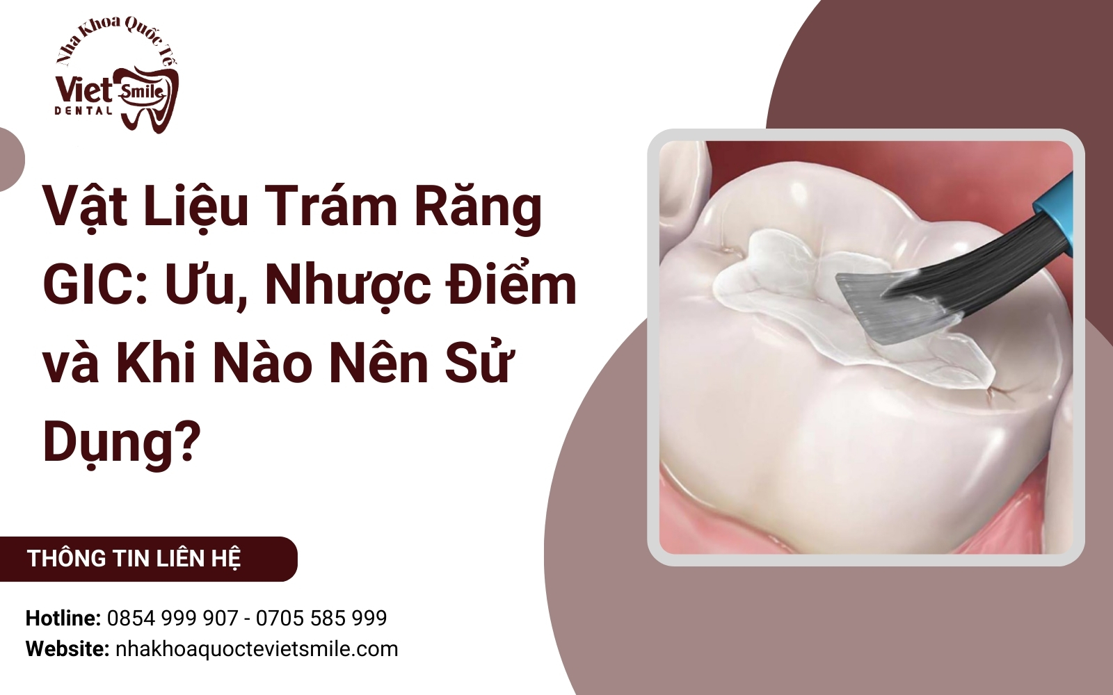 Trong nha khoa hiện đại, có nhiều loại vật liệu được sử dụng để phục hồi các răng bị sâu hoặc sứt mẻ. Mỗi loại đều có những đặc tính riêng, phù hợp với từng mục đích điều trị khác nhau. Trong số đó, vật liệu trám răng GIC (Glass Ionomer Cement) là một lựa chọn quen thuộc với những ưu điểm và hạn chế rất đặc trưng. Vậy chính xác thì vật liệu trám răng GIC là gì, khi nào nên sử dụng và chi phí ra sao? Hãy cùng Nha khoa Quốc tế Việt Smile tìm hiểu chi tiết trong bài viết này.